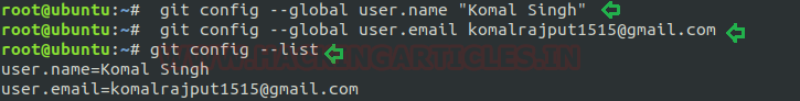 git config --global user.name "Komal Singh" git config --global user.email komalrajput1515@gmail.com