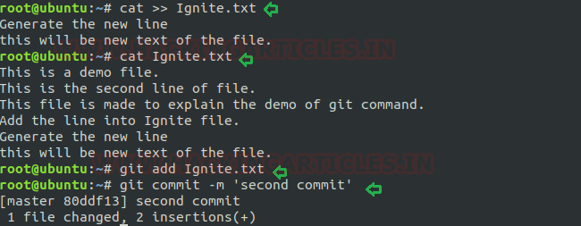 Now in the below screenshot I have added some more lines to my file “Ignite.txt” in the same way as above and will make another commit by mentioning it “second commit” to modify these changes to the git repo.