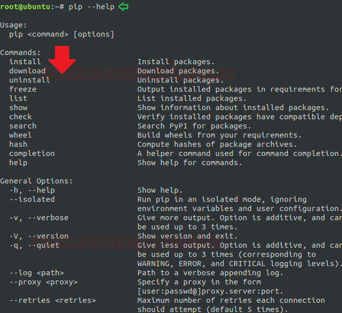 The pip is an abbreviation of “Python Install Packages” which is a tool for installing and managing Python packages. This command is very useful for web development as well as for sys-admins who manages cloud computing-based resources. Now we will start by running its help command to know the depth of “pip” operations.