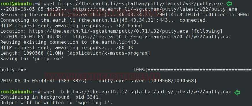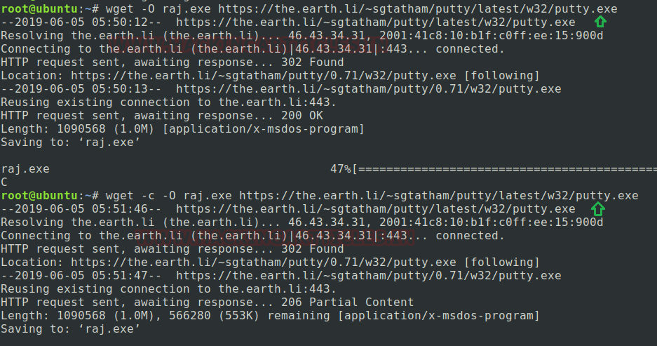 To download a file: Wget command provides assistance to their user for downloading any file/webpage in both platforms i.e. in front of the current processing screen and also in the background. Here I’m downloading putty.exe file in this article to show the overall working process of Wget command. Type below command to download a single file which use the simple syntax: Wget (option) URL
