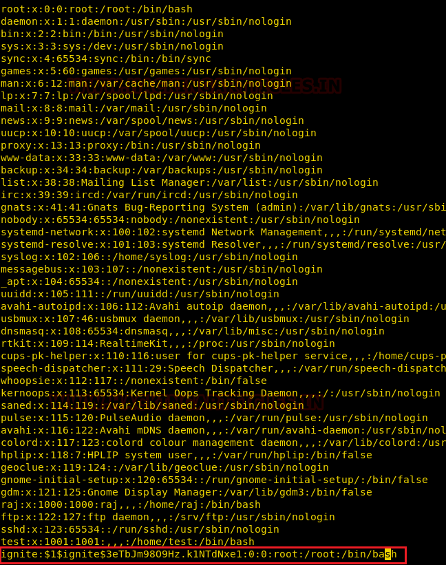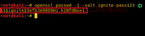And we will get our hash value something like this: “$1$ignite$3eTbJm980Hz.k1NTdNxe1”; copy it for further use.