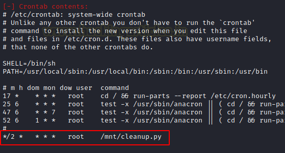 When enumerating the Cron Jobs, it found the cleanup.py that we discussed earlier.