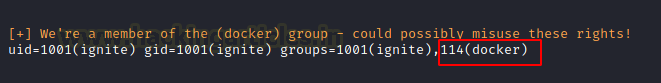 It also checks for the groups with elevated accesses. In this case it is the docker group.