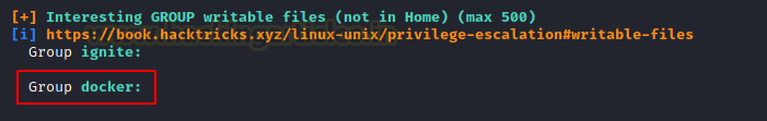 Here, we can see the Generic Interesting Files Module of LinPEAS at work. Among other things, it also enumerates and lists the writable files for the current user and group. Here we can see that the Docker group has writable access. So, if we write a file by copying it to a temporary container and then back to the target destination on the host. We might be able to elevate privileges. It is possible because some privileged users are writing files outside a restricted file system.