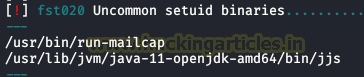 We use the lse.sh script, we enumerate two uncommon suid binaries, we will use “jjs” for privilege escalation.