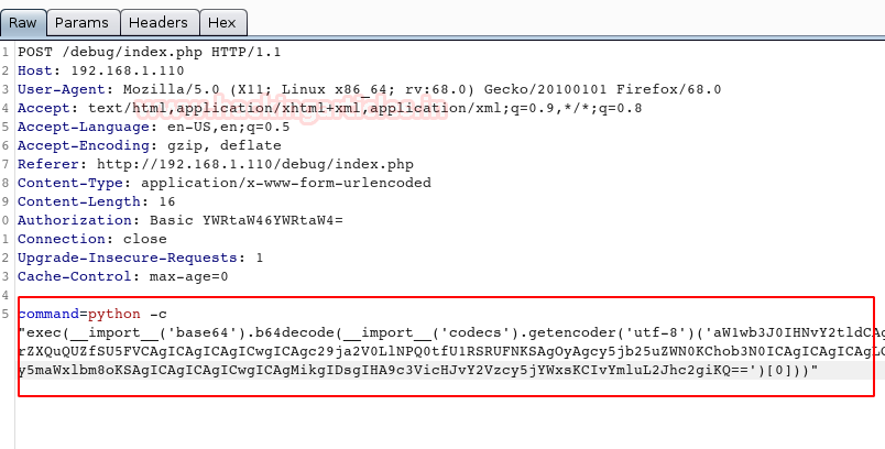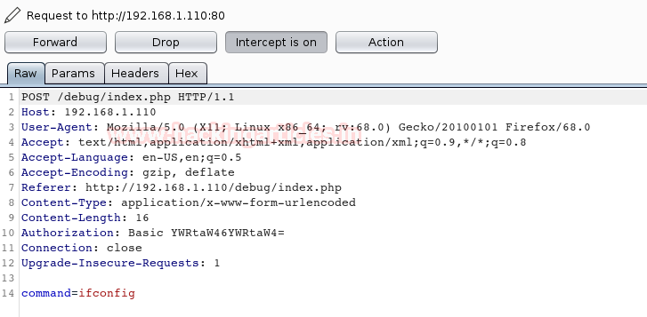 We copied the raw payload code and replaced the ifconfig command in the captured request in the Burp Suite as shown in the image below: