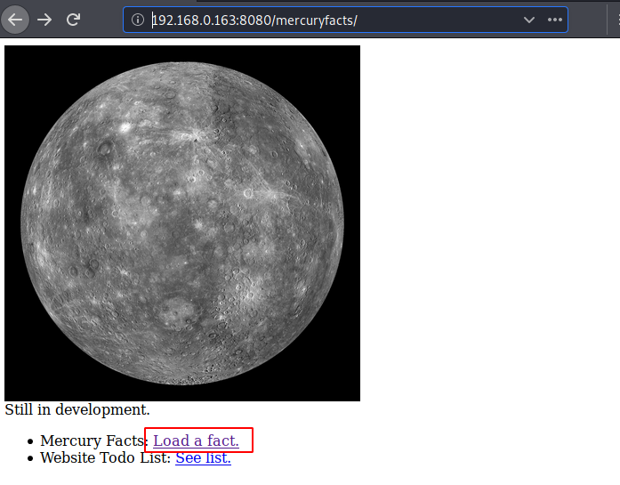 On opening the mercury facts directory, we found a hyperlink consisting a fact, so now click on load a fact.