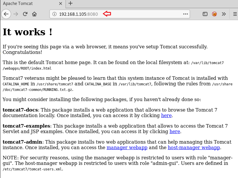So we browse the Target IP on port 8080 on the browser. WOW!! at the end of the web page you notice a path “/etc/tomcat7/tomcat-users.xml” where user-related information is defined.