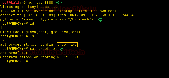 Booyah!! We have got the root access and found proof.txt. We take a look at the content of the file and greeted with a congratulatory message.