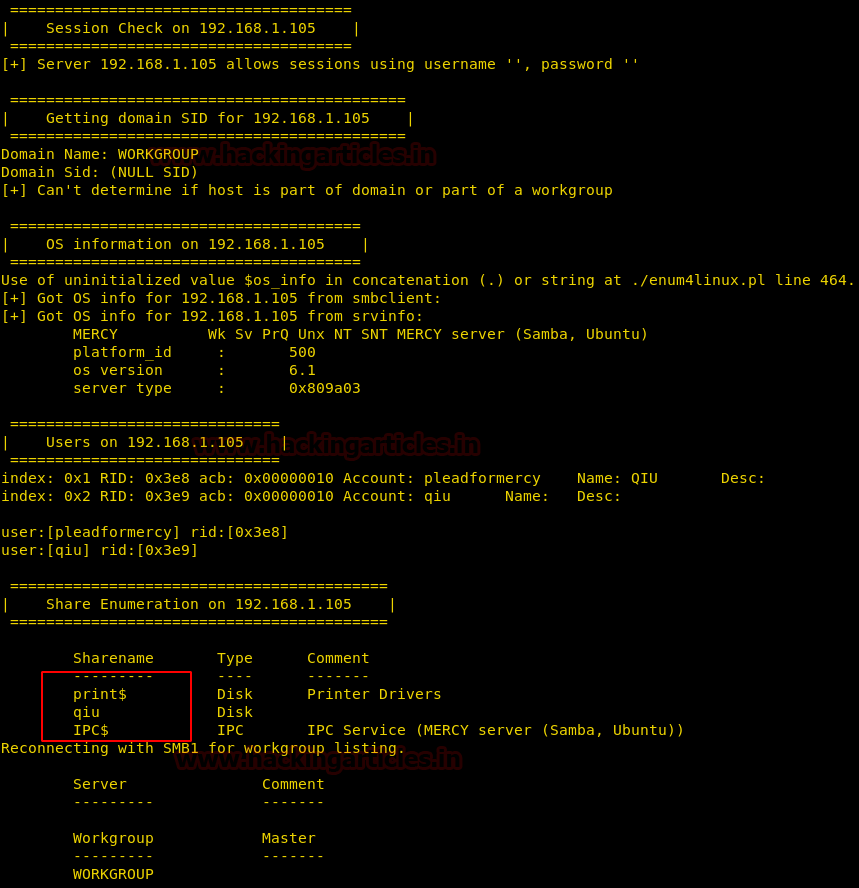 Since port 445 is open on the Target Machine, We thought of enumerating it using enum4linux tool.