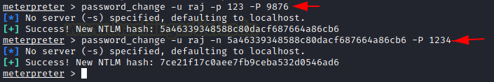 password_change -u raj -p 123 -P 9876 password_change -u raj -n <NTLM-hash> -P 1234