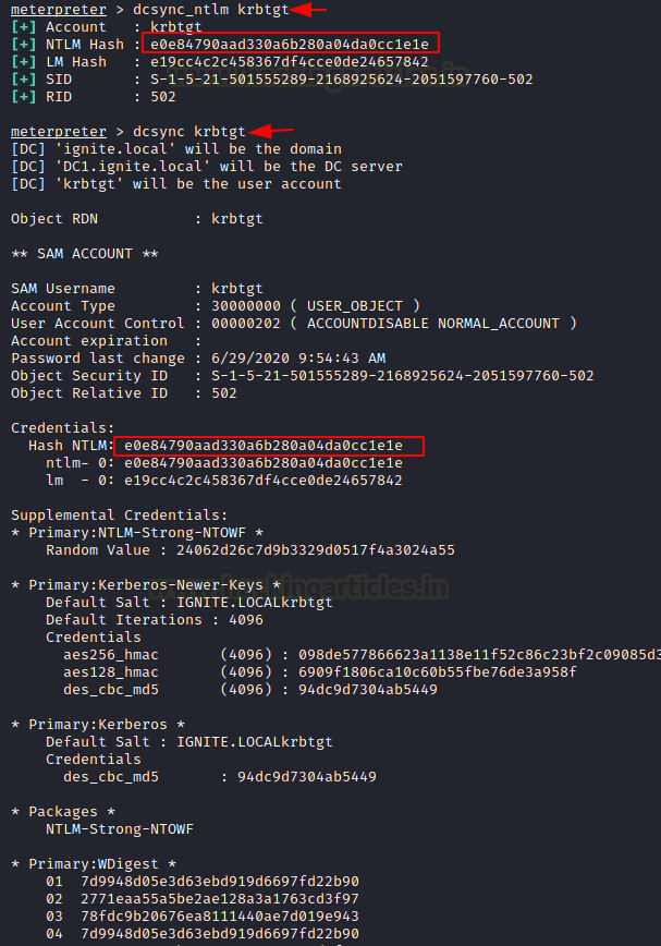 In case, you want to extract all the possible hashes or credentials from all the security packages on the target machine, then use creds_all command on the meterpreter. It will show all the credentials from the packages that we just discussed in one go.