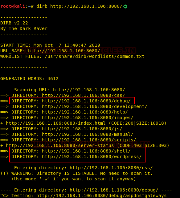 dirb http://192.168.1.106:8080/