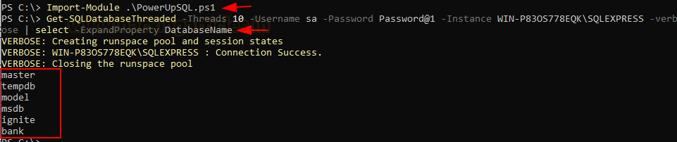 Import-Module .\PowerUpSQL.ps1 Get-SQLServerPasswordHash -username sa -Password Password@1 -instance WIN-P83OS778EQK\SQLEXPRESS -Verbose