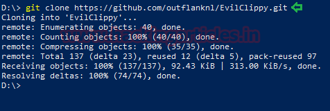 Here, we used the git clone command to clone the Evil Clippy tool to our Windows Machine. For this particular step, we need to install git on Windows. Also, add git to PATH Variable as well.