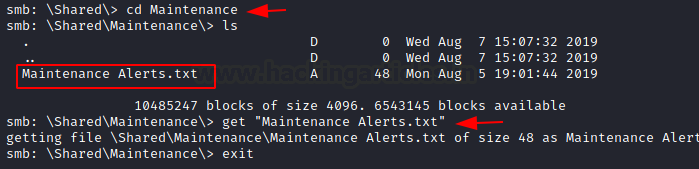 Here we found Maintenance and Templates directories. We went inside the Templates directory to find HR and Marketing directory. We traversed inside the HR directory. Here we found a Welcome Email text file. To inspect it we download it to our local machine. We went back to the Maintenance directory to find a Maintenance Alerts text file. Then we download it as well.
