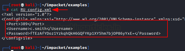 We read the RU Scanner’s config file to get the c. smith user’s credentials. but the password seems to be encrypted.
