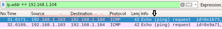 Again demonstrating request packets of Ping Sweep scan with Wireshark and if you notice given below image then you will found that this time it has not received any reply packet.