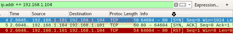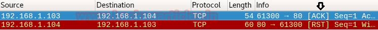 When you will notice given below packets captured by Wireshark you will found that here ACK packet is sent on port 80 as reply received RST packet from port 80.