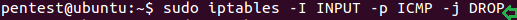 sudo iptables -A INPUT -p icmp --icmp-type echo-request -j DROP