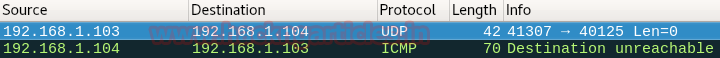 Demonstrating NMAP UDP Ping with Wireshark shows UDP request packet sent on 40125 in the network and received ICMP destination unreachable as reply packet from host network as shown in given below image.