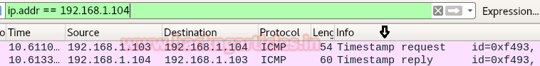 Demonstrating NMAP ICMP timestamp Ping with Wireshark shows ICMP timestamp request packet send in the network and received any timestamp reply packet from host network as shown in given below image.