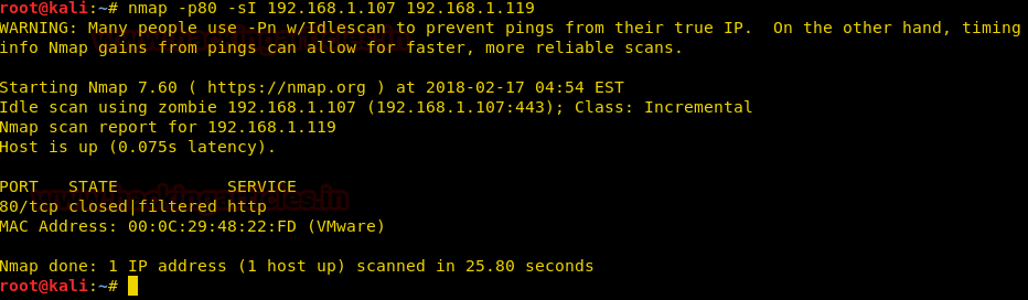 nmap -p80 -sI 192.168.1.107 192.168.1.119
