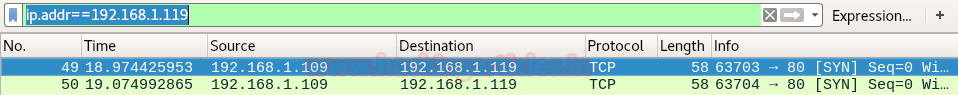 We will check wireshark to analyze the packets sent by nmap and we can see we don’t get a reply even if the port is open.