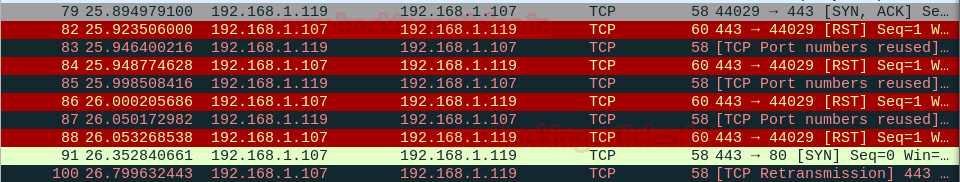 We have now discovered that the SYN scan sent TCP SYN packets on port 80, which indicates that the target machine is closed. That is because as soon as it receives TCP SYN packet it sends back TCP RST, ACK packet.