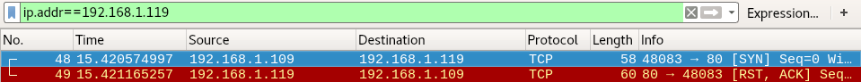 Wireshark shows us that for port 22 we receive a RST packet, whereas in the case of port 80, the target machine drops the packet.