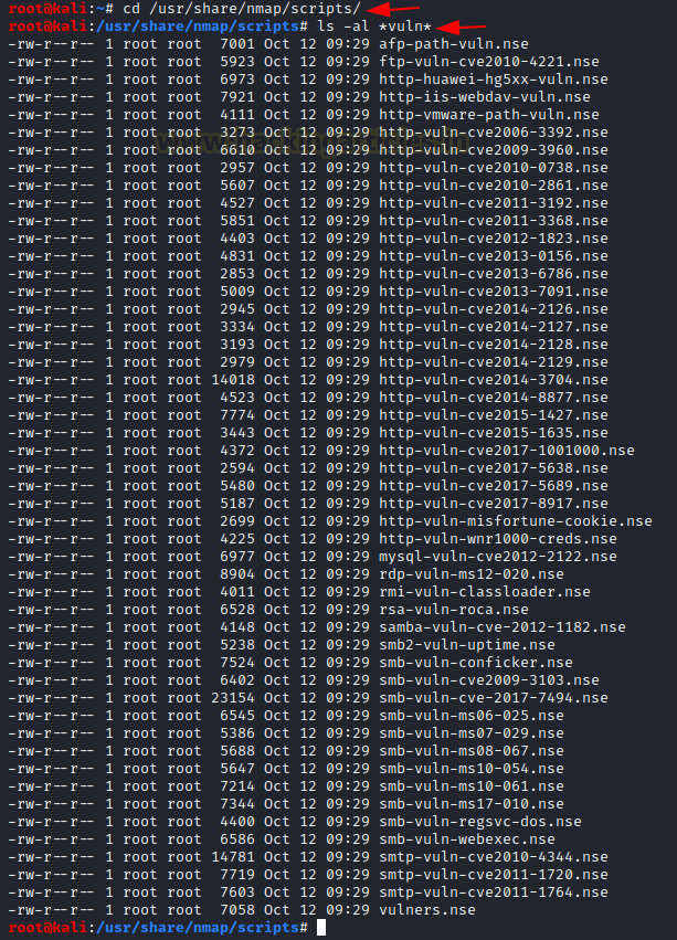 cd /usr/share/nmap/scripts/ ls -al *vulns*