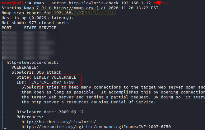 It checks for the vulnerability in the web server Slowloris DoS attack where it does not launch an actual DoS attack. This script will open 2 separate connections to the server and then request for URL in base configuration.