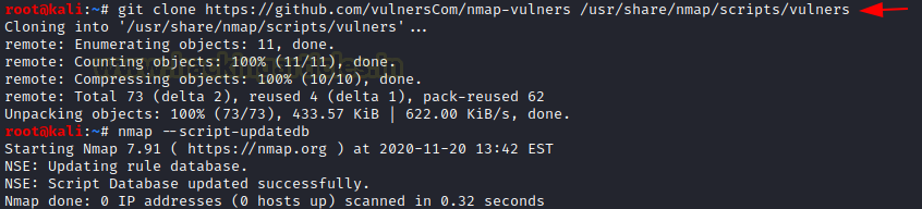 git clone https://github.com/vulnersCom/nmap-vulners /usr/share/nmap/scripts/vulners nmap --script-updatedb