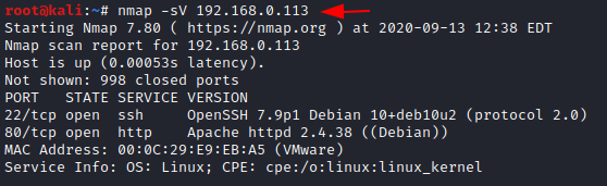 nmap -sV 192.168.0.113
