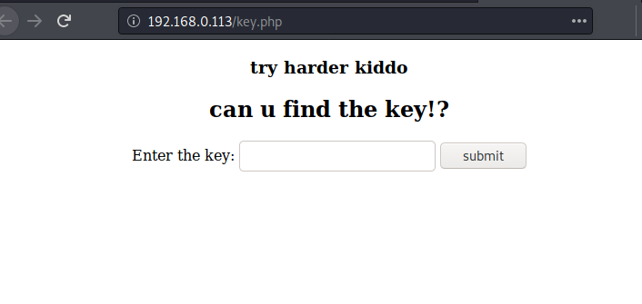 Browsing the URL gives us a form where we need to enter the key to move forward. Now, all we got to do is find the key. That shouldn’t be too hard.