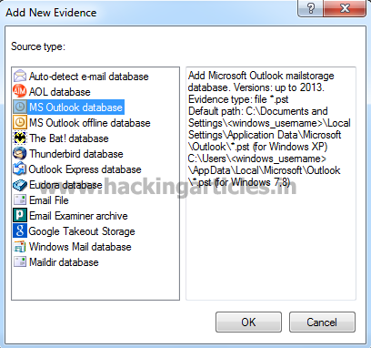 Then, select MS Outlook Image option from source type which will add the outlook image evidence.