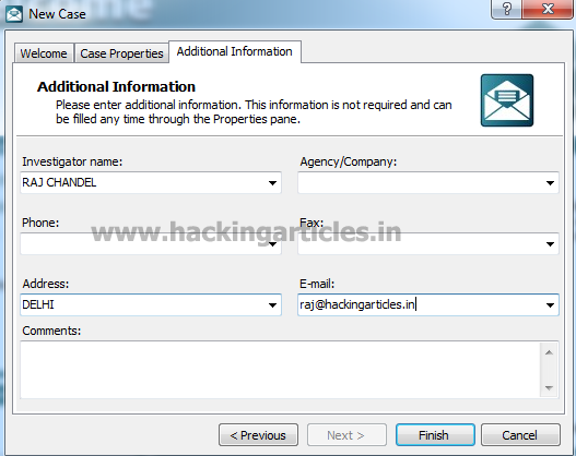 Here in next step you have to enter the Investigator name and email details and click on finish to proceed to next step.