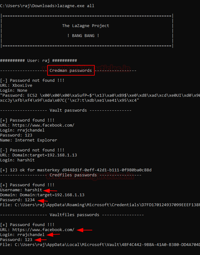 Similarly, we can also use lazagne, another handy tool that you can download from here.