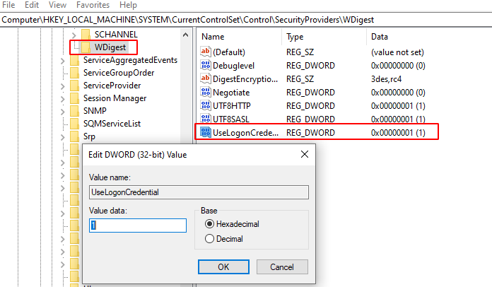 HKLM\SYSTEM\CurrentControlSet\Control\SecurityProviders\Wdigest