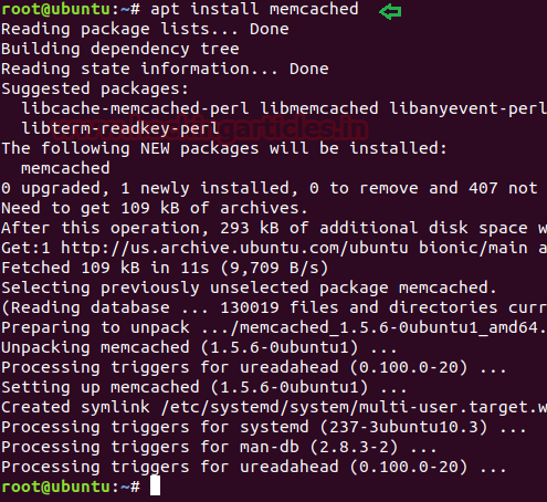 Now that we are all done, let’s setup Memcached by typing the commands shown below.