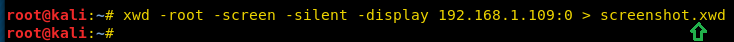 xwd -root -screen -silent -display 192.168.1.109:0 > screenshot.xwd