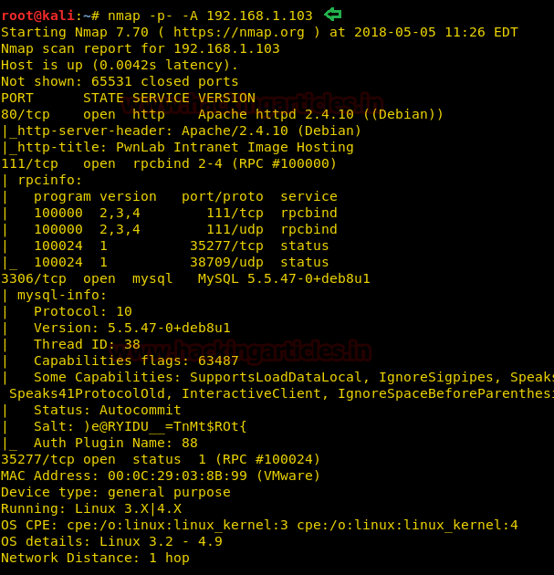 Now to start let us, firstly, consider that we do not know the IP of the PwnLab, therefore search for the IP address beforehand and for that there is a command that shows us all the IP’s present in our network, so go to the terminal of you Kali and type :