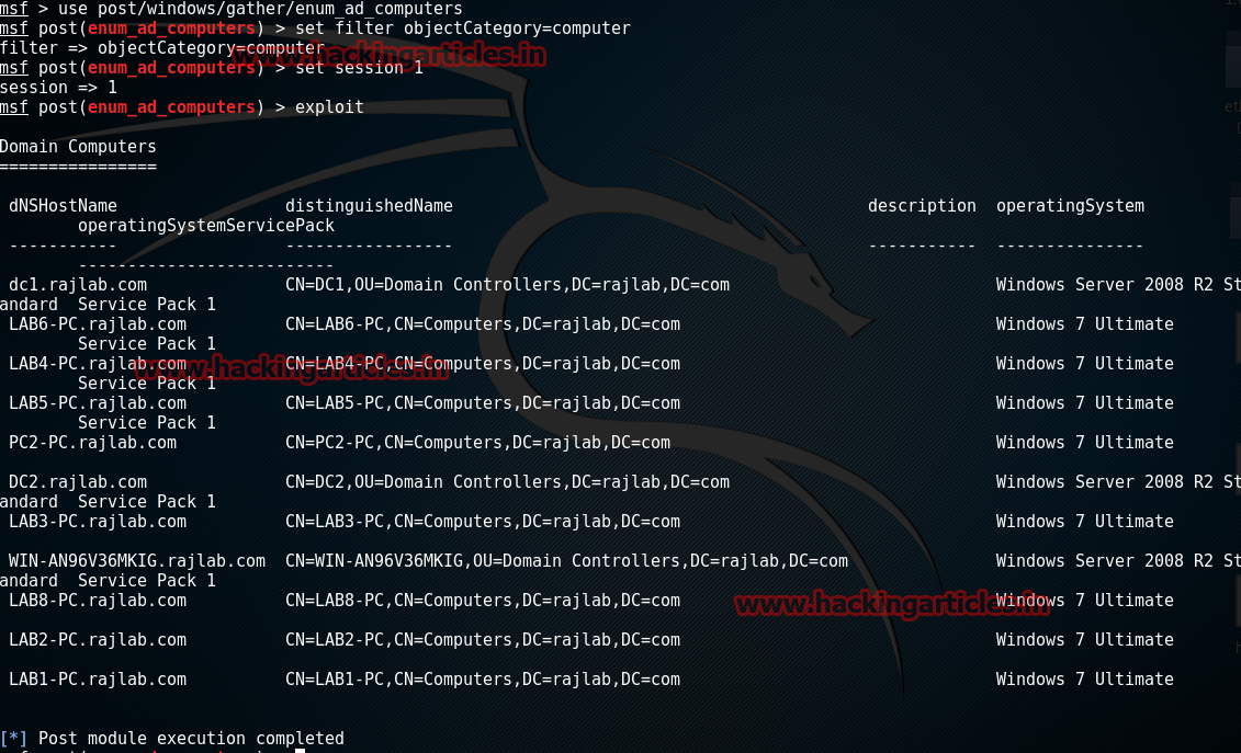 msf post(enum_ad_computers) > set filter objectCategory=computer