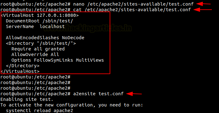 Now let us create the test.conf file and add the following code in /etc/apache2/sites-available/