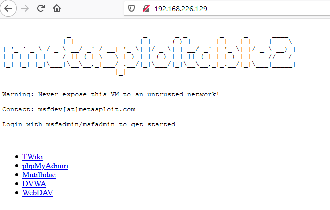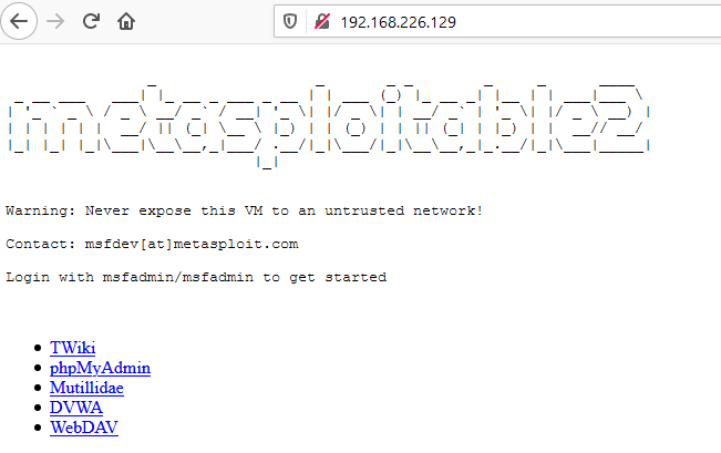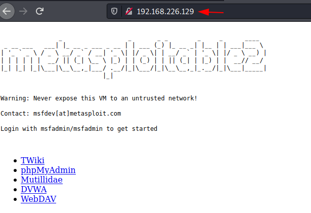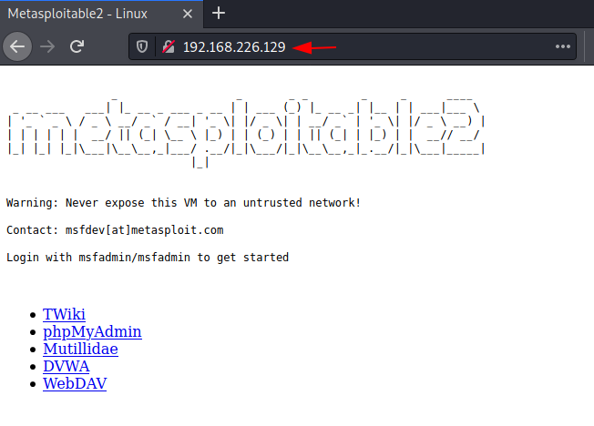 Subsequently, when you put the Metasploitable 2 IP address in your Kali Linux’s browser, you will able to access the Metasploitable 2 on port 80.