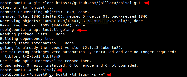 Note: Chisel is written in Golang. Therefore, to ensure it functions correctly, we must also install Golang.